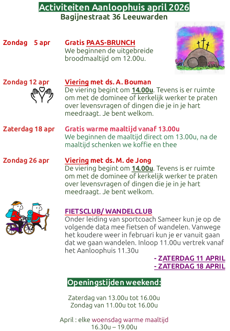 Als op zaterdag om 13.00u de deur van het Aanloophuis opengaat, komen de lekkere geuren je al tegemoet. Gelukkig is de kookploeg weer aan de slag en wordt er heerlijk gekookt. De koffie en thee staan al klaar. Sinds 23 maart 2022 zijn de coronamaatregelen zodanig versoepeld dat er steeds meer activiteiten zijn in het Aanloophuis. We kunnen elkaar weer écht ontmoeten en dat doet ons allemaal goed.